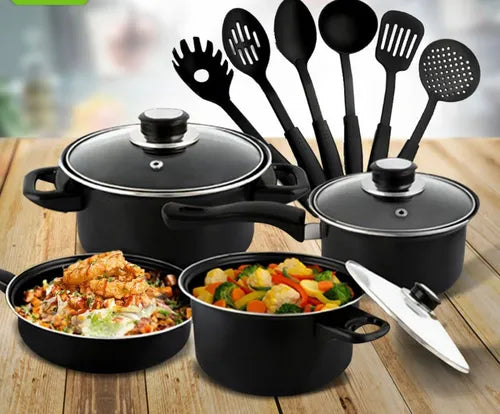 Juego de utensilios de cocina antiadherentes, juego de ollas y sartenes, utensilios de cocina, sartén, regalos para amigos y familiares, 13 piezas