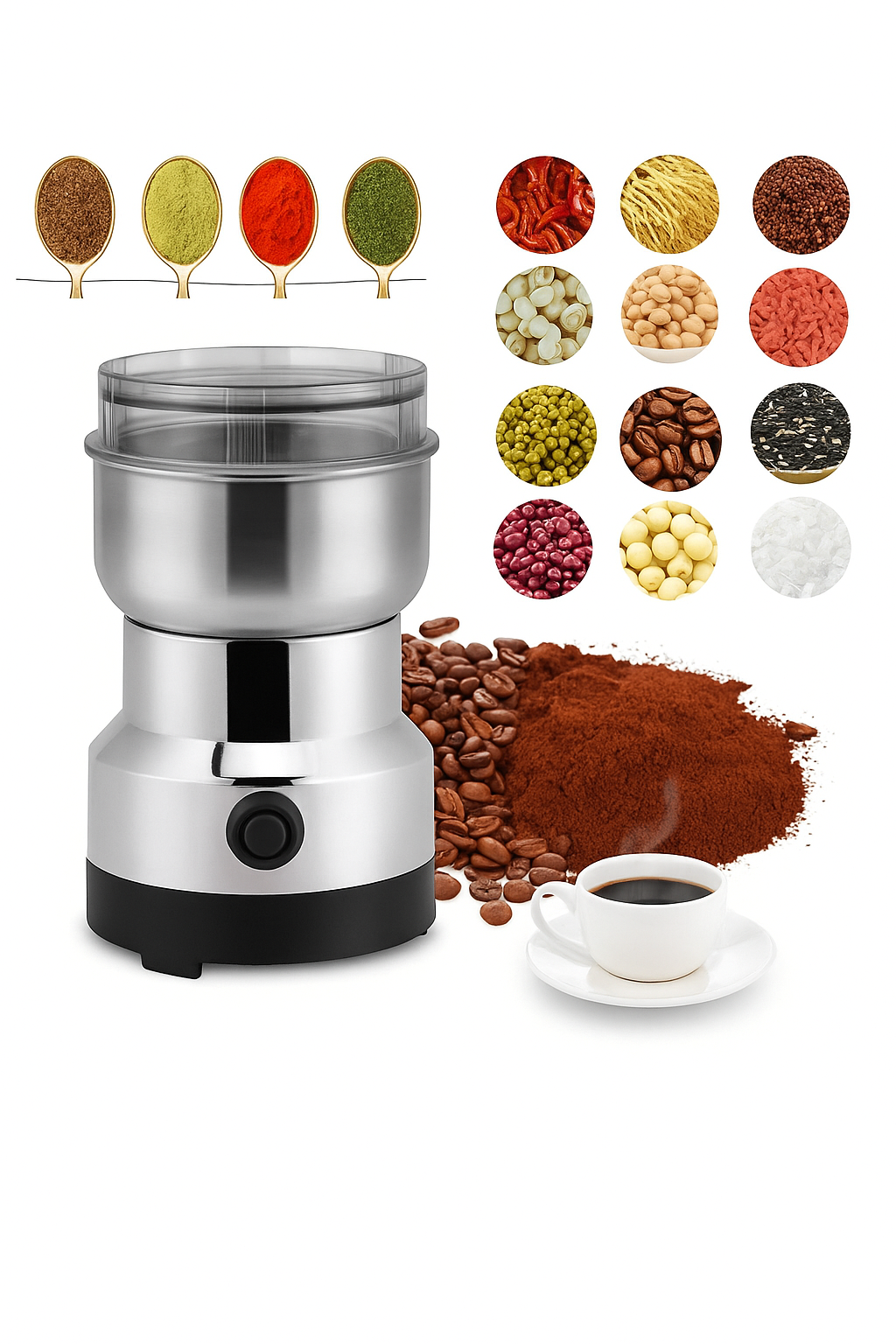 🌟 Molino de Café Eléctrico - ¡Para Amantes del Sabor Fresco! 🌟¿Quieres llevar el aroma del café recién molido a otro nivel? ☕ Este molino eléctrico es perfecto para ti. Tritura café, especias, granos y más en segundos, con un motor potente y cuchillas de acero inoxidable que aseguran una molienda uniforme y deliciosa.🔹 Versátil y práctico: Ideal para café, semillas y especias.🔹 Diseño compacto: Ahorra espacio y es fácil de almacenar.🔹 Fácil limpieza: Desmontable para una limpieza rápida.🌿 Lleva la frescura y el sabor de los ingredientes molidos al momento a tus recetas y bebidas. ¡Dale a tus sentidos el café que merecen! 🌿