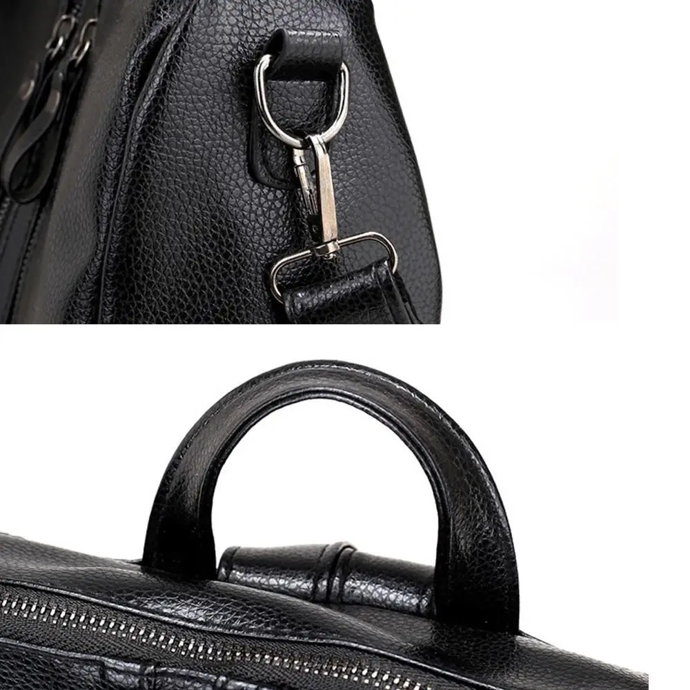100% novo e de alta qualidade. Tipo: Mochila Material: Couro PU Cor: Preto Tamanho: Como mostrado na imagem Macio e resistente, elegante e versátil, pode ser usado como uma bolsa de um ombro ou ombro. Acabamento, design de mão confortável, zíper de cabeça dupla, bolsos laterais e alça de ombro destacável. Pode acomodar guarda-chuvas, carteiras, iPads, revistas e outros objetos triviais. É um parceiro essencial para você sair. O pacote inclui: 1 x Mochila Notas: 1. Devido ao monitor diferente e efeito de luz, a cor real do item pode ser ligeiramente diferente da cor mostrada nas fotos. 2. Por favor, permita um desvio de medição de 1-3 cm devido à medição manual.