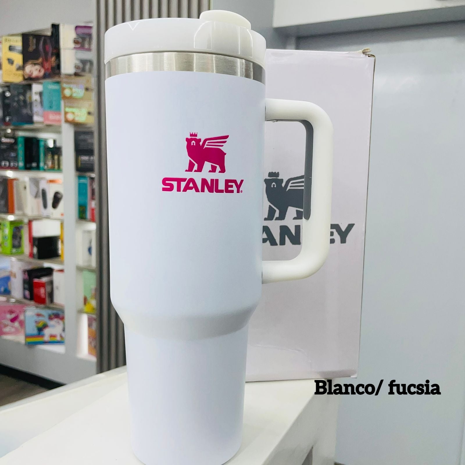 TERMO STANLEY QUENCHER H2.0Descripcióntiene un tamaño generoso (pero no demasiado grande) con un mango cómodo y fácil de transportar y una base estrecha que se adapta a la mayoría de los portavasos. ¿Largo día de reuniones? ¿Viaje fuera de la ciudad?, fabricado con doble capa de acero inoxidable, está a la altura del desafío de la hidratación. Material :Acero inoxidableCapacidad :40 oz Pitillo reutilizable